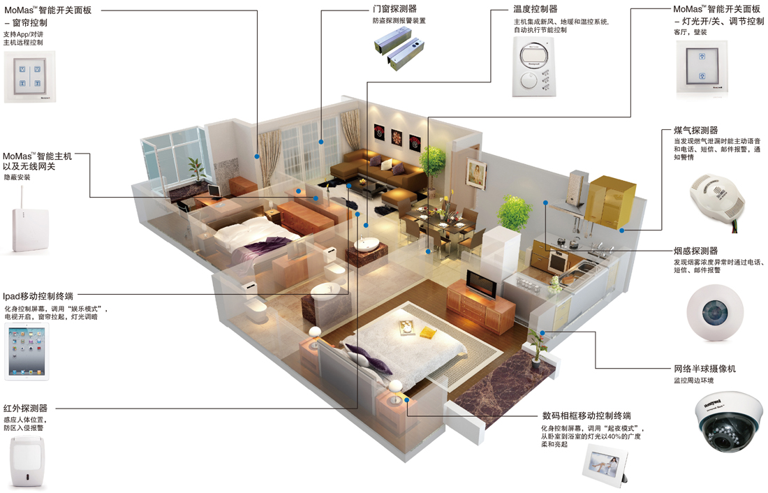 霍尼韋爾的智能系列都可以通過紅外線方式進行控制,實現(xiàn)多種產品控制。該套系統(tǒng)可以借助電腦、智能手機來實現(xiàn)與相關家電產品的全方位互動,克服傳統(tǒng)紅外控制的智能單向通信的弊端。其可視對講、智能集成控制、家庭報警、社區(qū)監(jiān)控、門禁管理、遠程控制等為一體的整體智能社區(qū)解決方案。